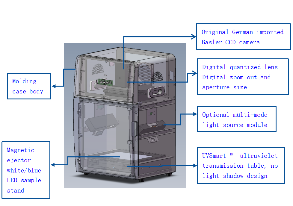 ● Real-time preview of gel images is obtained directly through USB digital interface to facilitate focus